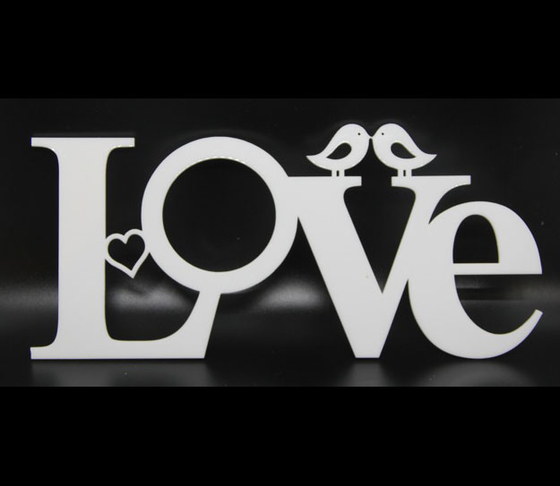 A plaque laser cut from 1/8" white acrylic, red acrylic, or finished birch wood. Your photo can be placed behind the "O".
